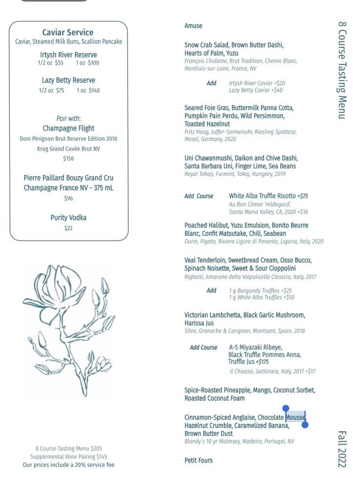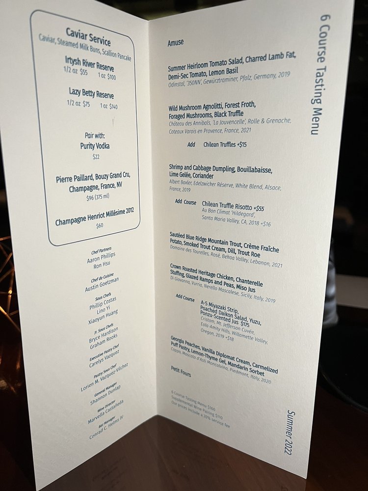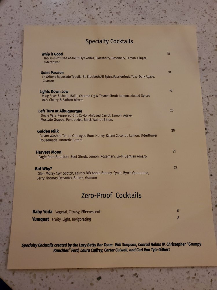Introducing the menu at Lazy Betty is an experience like no other in the New American cuisine scene. Located in Atlanta, GA, this restaurant offers a wide range of options for diners, including pescatarian and vegan choices. The ambiance is classy yet welcoming, perfect for special occasions. Customers rave about the impeccable service, artful presentation of dishes, and the overall dining experience. With dishes like fois gras terrine with beets, scallops, truffle risotto, and duck, Lazy Betty truly delivers on flavor and quality. The tasting menu, which consists of 7 courses, is a standout, offering exciting and complex flavors in each dish. While the price may be on the higher end, customers agree that it is well worth it for the exceptional food and service. Lazy Betty's attention to detail and dedication to culinary excellence make it a top contender for a Michelin star in Atlanta.